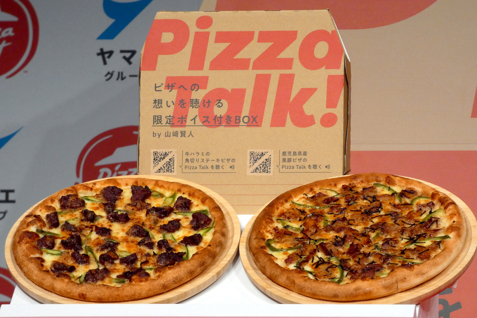 これにあわせ、同社のテレビCMに出演する山﨑賢人が両商品への熱い想いを語る音声コンテンツにアクセスできる二次元コードが記載されたピザBOXが登場。S/M/Lサイズのピザ全商品で使用される。