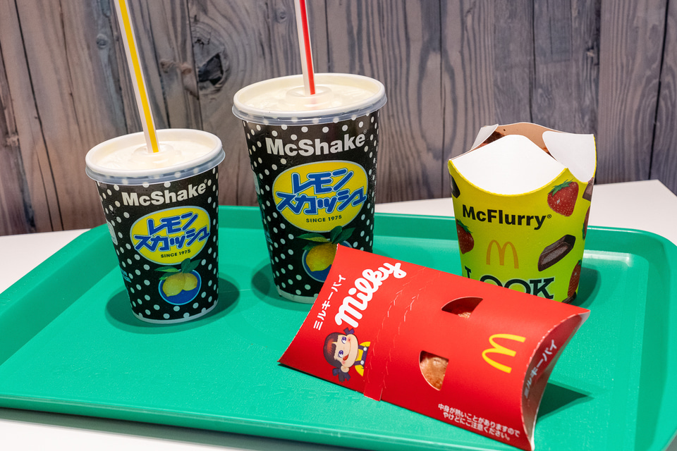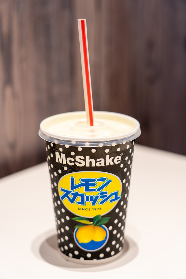 続いては「マックシェイク レモンスカッシュ」。不二家のロングセラー炭酸飲料「レモンスカッシュ」の爽やかさとマックシェイクのやさしい甘さがミックスされた、夏にぴったりのスイーツドリンクで、こちらもレトロでエモいパッケージがたまりません。