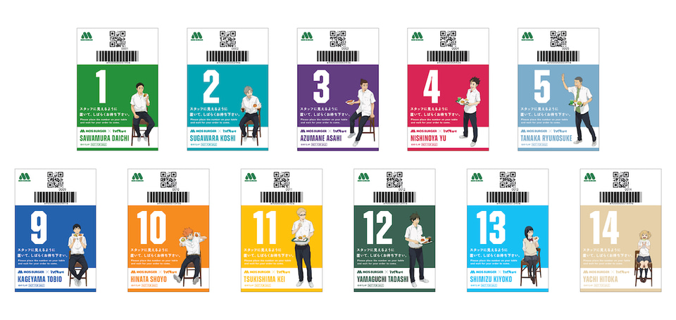 都内のモスバーガー4店舗と、宮城県仙台市内のモスバーガー4店舗で、「ハイキュー!!」のキャラクター名がモスバーガーでの食事を楽しんでいる様子を描いた、モスバーガー×「ハイキュー!!」オリジナルデザインの等身大パネルを期間限定で設置する。