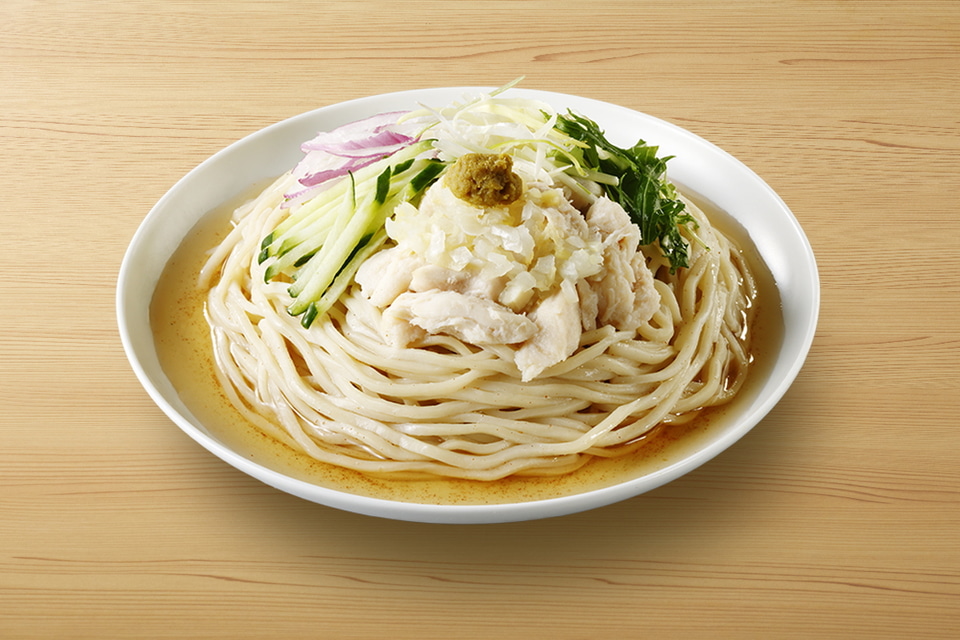 鳥取県・岡山県・島根県・広島県・山口県(下関市は豊北町・豊浦町のみ)・徳島県・香川県・愛媛県・高知県では「らぁ麺はんにゃ監修 煮干しと昆布の冷しラーメン(塩)」(646円)が販売される。煮干しと昆布を使用した塩スープに、豚ロースと鶏の2種類のチャーシュー、錦糸卵、キュウリ、ねぎが組み合わせられている。