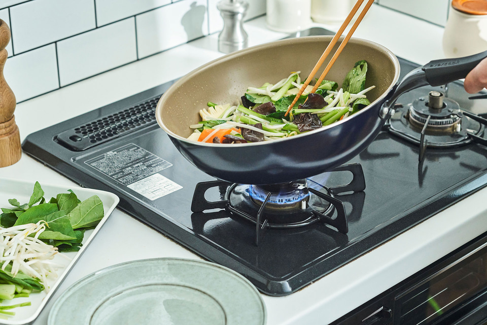 こびりつきにくいフライパンで、サッと調理して、サッと汚れを落とすことができる。