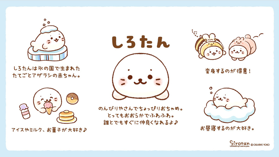 今回は第2弾のコラボとなり、舌をペロリと出した表情をまねっこするしろたんのほか、お友だちの「らっこいぬ」「しぇる」「らむね」も登場する。