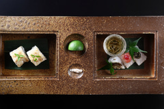 星のや京都、旬のスズキや毛蟹にイタリア生ハムやネパール山椒を用いた“遊び心”ある夏の会席料理を提供中