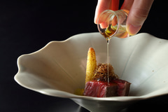 星野リゾートの「星のや京都」では、京都の伝統技法にネパール山椒やラルドなどの世界の妙味を加えた夏の会席料理「真味自在・夏」を提供している。