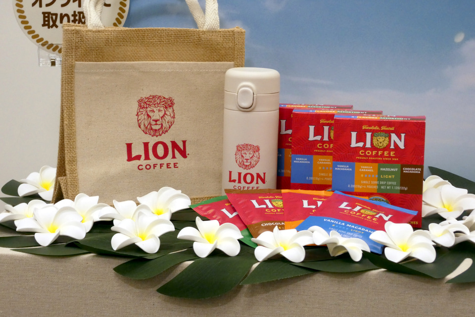 また、ファミマオンラインでは、「ライオンコーヒー ファミリーマート オリジナルセット」が販売される。バニラマカダミア、バニラキャラメル、チョコレートマカダミア、ヘーゼルナッツの4種×3箱、オリジナルのワンプッシュ真空ステンレスボトル(320ml)、トートバッグがセットになっており、3500円+送料660円で購入できる。