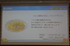 14日に開催された発表会には、同社のテレビCMに出演する八木莉可子が登場。自身がセレクトした「みんなオハナだよプレート」と名付けた特製ハワイプレートを披露し、「うまアロハです」とアピールしていた。