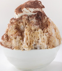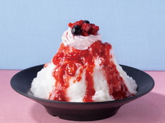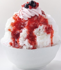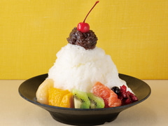 不純物が少なく透明度が高い純氷を使用したかき氷で、雪のような口どけが楽しめるように仕上げた。練乳シロップやいちごソースなど12種のトッピングも用意し、自分好みのかき氷が作れるようになっている。