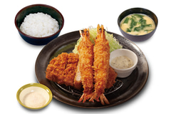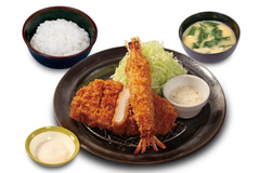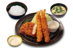 ・国産 麦小町ロースかつ&有頭大海老フライ定食(1尾 1560円、2尾 2030円)