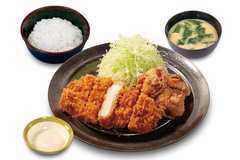 本格唐揚げやエビフライとの盛り合わせ定食のほか、「いつものロースカツ」との食べくらべ定食も用意している。