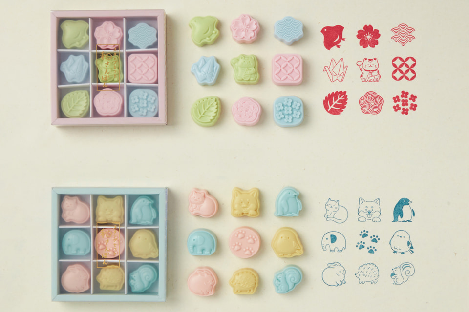 9個セットでは、青海波や七宝、水引、千鳥といった日本の伝統的な文様のほか、桜やあじさい、葉っぱなど自然を感じさせるモチーフを織り交ぜた「わふうがら」と、猫や柴犬、うさぎ、シマエナガなどの動物がデザインをセットにした「どうぶつがら」の2商品をラインアップ。