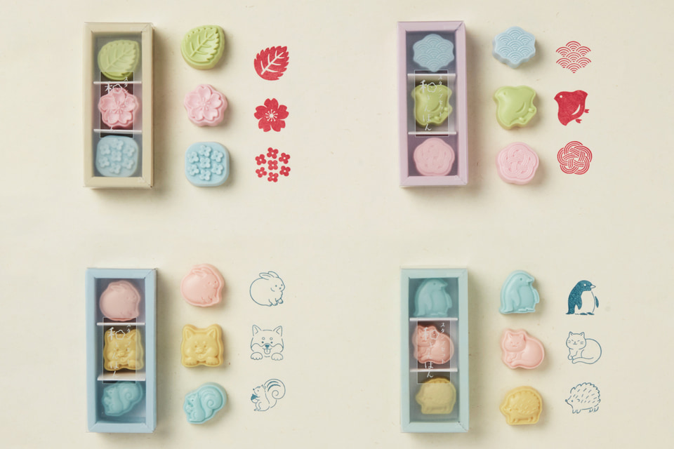 3個セットでは、青海波、千鳥、水引の「ことぶき」、葉っぱ、桜、あじさいの「おはなみ」、うさぎ、柴犬、りすの「いぬたち」、ペンギン、猫、ハリネズミの「ねこたち」の4商品が用意されている。