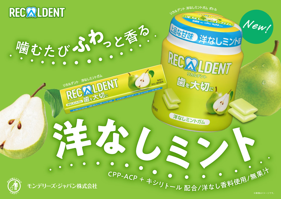 同商品は、洋梨をイメージした上品な甘味とほんのりとした酸味で、噛んだ瞬間に華やかな香りが広がる新フレーバー。他のリカルデントブランド製品にも含まれる牛乳由来成分「CPP-ACP」や「キシリトール」が配合されている。