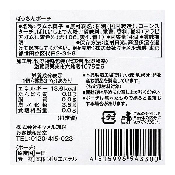 口がバネ式のぱっちんタイプになったミニポーチ(約130×100mm)で、中にラムネが4個入って価格は448円。カラーは3色(オンラインストアではランダム)。