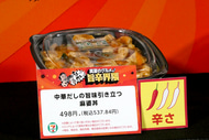第2弾では、「水煮牛肉 牛肉の四川風唐辛子煮込み」(648円)、「中華だしの旨味引き立つ麻婆丼」(498円)、「ジワジワ旨辛キムチチャーハンおむすび」(168円)、「スパイシーピザパン」(250円)、「にんにくと唐辛子のウマ辛冷し辛麺」(500円)、「ラップデリスパイシータコスミート」(298円)が販売される。