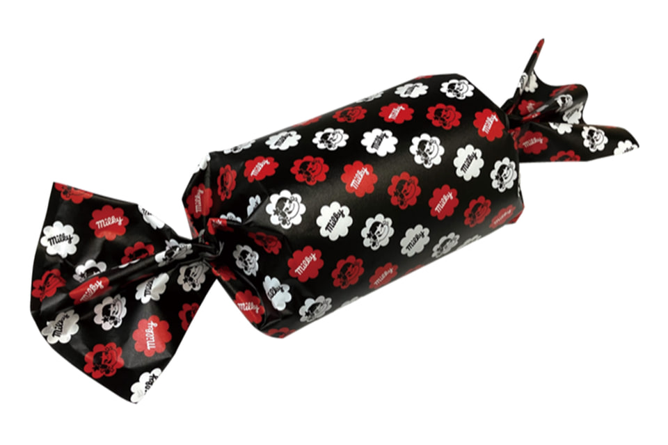 「ミルキー」から、「裏不二家の日」のテーマカラー「ブラック」な色合いのコーラ味を期間限定で発売。パッケージも裏デザイン仕様で、3パターンのデザインにそれぞれ裏デザインを展開した全6種類を楽しめる。
