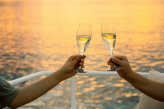 含まれるもの: クルーザーチャーター、アペリティフ、ディナー