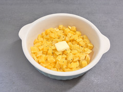 皮をむいて小さめの10mm角のサイコロ状にカットすることで、大小さまざまなじゃがいもを無駄なく活用。どんな料理にも手軽にそのまま使える仕様で、電子レンジの加熱だけでもやわらかく仕上がるので、ポテトサラダのようにつぶす工程が必要な料理でも時短調理が可能だ。
