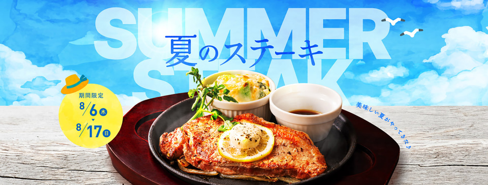 デニーズ、ステーキメニューにライスが付く「夏のステーキフェア」実施。大盛無料!