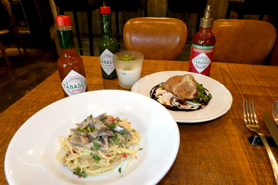 本誌では、このうちBriccaに伺い、「マイワシと焼きなすの冷製パスタ×TABASCOオリジナルレッドペパーソース」(2200円)、「生ハムを巻いたいちじくのフライ×TABASCOシラチャーソース」(1850円)、「自家製レモンチェッロのフローズンカクテル×TABSCOハラペーニョソース」(880円)の3品をいただいた。