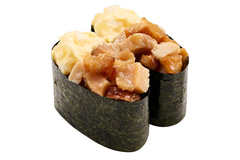 脂のり抜群の「大とろ」と、ほどよく脂がのり食べ応え抜群の店内切りの「大切り サーモン」、国産天然ぶりを使用した「天然ぶり胡麻醤油漬け」、甘辛味のてり焼きチキンとたまごサラダのまろやかな味わいが楽しめる「てりたま軍艦」は8月24日までの期間限定商品。