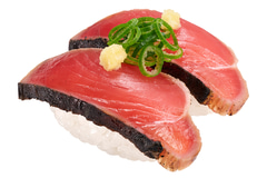 びん長まぐろをピリ辛タレで味付けした創作すし「タレ漬けびん長 青唐辛子」、一本釣りされた国産のかつおを炭焼きした「炭焼きかつおたたき」も提供する。