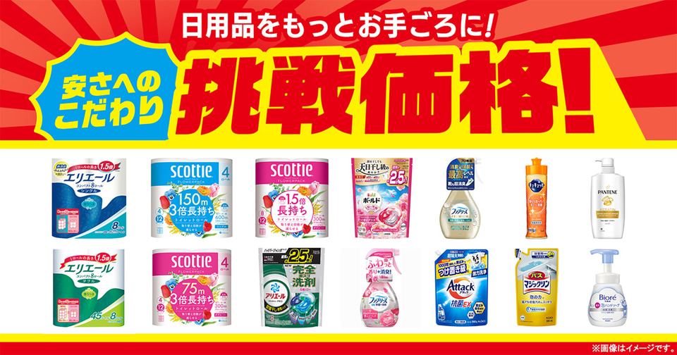 また、2022年から「安さへのこだわり 挑戦価格」と題して、ナショナルブランド商品のなかのトイレットペーパーなど日用品の一部を、ファミマのアプリ「ファミペイ」限定で100~200円引きとなるクーポンを配信している。クーポンの使用期間は8月18日まで。