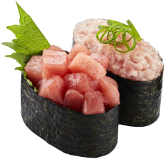 本鮪中とろのぶつ切り軍艦と、ねぎとろ軍艦を一貫ずつ。