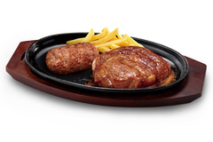 ・ブロンコおじさんのこだわり炭焼きがんこハンバーグ&炭焼き国産リブロースステーキ 300g(3498円)