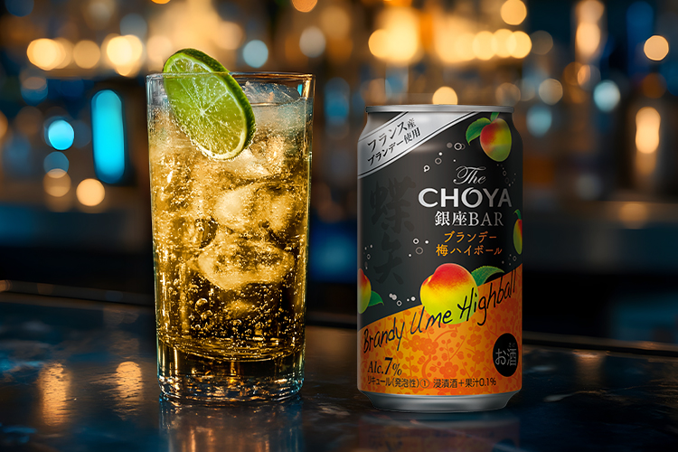 梅酒カクテル専門店「The CHOYA 銀座BAR」(東京都中央区)のカクテルレシピの技術から発想を得て開発したもの。紀州産南高梅をフランス産ブランデーに漬け込み熟成させた梅酒と、紀州産南高梅を酒精で漬けた梅酒をブレンド。そこにフランス産ブランデーを追加し、ドライ感と梅の酸味を立たせすっきりとしたキレのある梅酒ソーダに仕上げた。