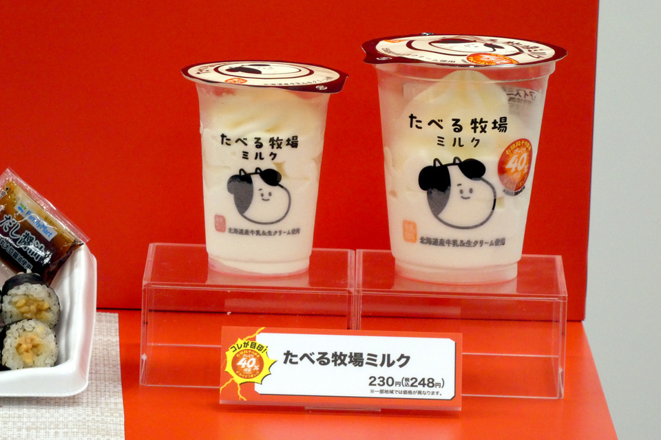 2週目に発売となるのは、「たべる牧場ミルク」(248円)、「こだわり納豆の納豆細巻寿司」(420円)、「こだわり肉シュウマイ&肉団子(黒酢入りだれ)」(468円)、「サクサクか~るいチーズスナック」(138円)の4商品。