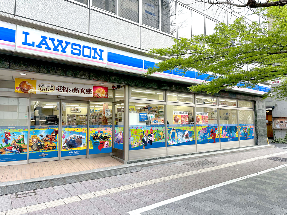 スーパー・ニンテンドー・ワールド内にオープンしたドンキーコング・カントリーからドンキーコングやディディーコングが登場するのに加え、マリオやマリオの仲間たち、ウッディー・ウッドペッカー、セサミストリートの仲間たちが楽しく華やかにローソンの外観や店内を彩り、パークをイメージさせる楽しい効果音も流れるという。両社コラボでは初のラッピング店舗となる。