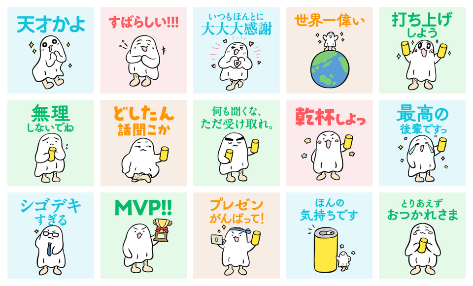 サントリーLINE公式アカウント「おとなサントリー」から利用するソーシャルギフトサービスで、オリジナルキャラクター「デネさん」のスタンプとサントリーの酒(「オールフリー」を含む)へ交換可能なドリンクチケットをSNSなどを通じて贈れるというもの。