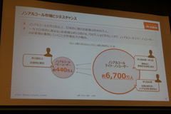 同社による調査によれば、ノンアルコール飲料を月に1回以上飲む人(ヘビーユーザー)は約440万人となっているが、日常的に飲用しない人(ライト・ノンユーザー)は約6700万人も存在するとして、同氏は後者へのアプローチがノンアル市場全体の拡大の機会になると指摘する。