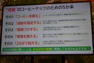 眠りを妨げるとされるカフェインも、血液中の濃度が最大になるまでに15分~20分程度の時間を要する。昼寝の前にコーヒーを飲むことで、ちょうど起きたところで覚醒作用が働くことから、コーヒーと仮眠を組み合わせる“コーヒーナップ”は理に適っているという。