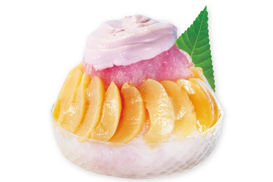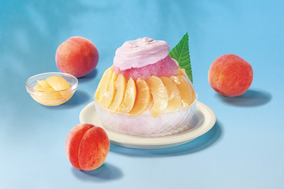 天然水を使用した純度の高いかき氷専用の氷「夢のふわ雪」を使用し、ジューシーな旬の白桃をトッピングした。また、上には桃クリームや甘酸っぱい桃のシロップがかかる。