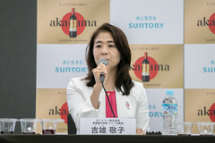 8月20日に開いた発表会では、常務執行役員 ワイン本部長の吉雄敬子氏、ワイン本部 国産ワイン部長の石井勝氏、スピリッツ・ワイン開発生産本部 スピリッツ・ワイン商品開発研究部 部長の生木大志氏が登壇して、「赤玉プレミアムブレンデッドワイン」の開発背景や特徴を紹介した。