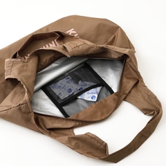 付属のゴムバンドでコンパクトにまとめることができるので、かさばらないのが魅力。ファスナー付きで、メッシュポケットには保冷剤やポイントカードなどを入れられる。
