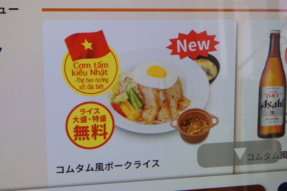 ちなみに、同店では券売機による注文システムが採用されており、英語、中国語、韓国語にも対応しているが、残念ながらベトナム語には非対応。言語設定としてベトナム語は選択できないが、メニュー画像の一部にベトナム語を添えることで、店舗を訪れたベトナム人の目にとまりやすくしているようだ。