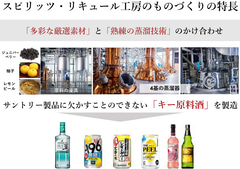 スピリッツ・リキュール工房において、安川電機などとの協業により原料運搬ロボット・原料ハンドリングロボットを導入、倉庫から原料を運搬し投入するまでのプロセスを自動化し、人の手による原料取り扱い業務の時間を三分の一(年間約2,000時間)削減できることを見込んでいる。この作業負担軽減により、生産現場では「美味品質追求の時間」をより創出できるとしている。