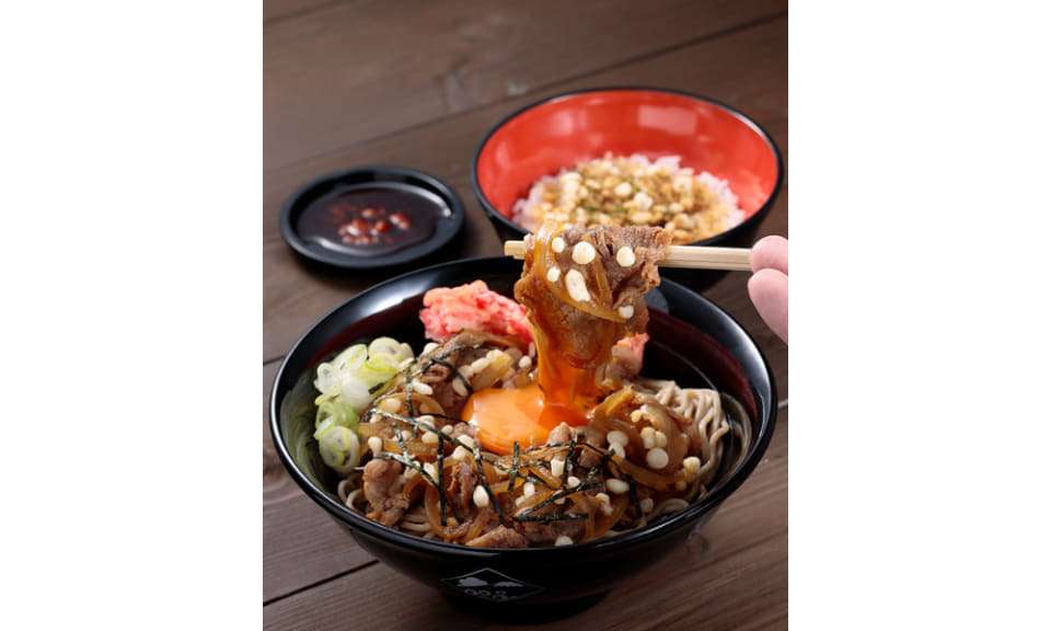 名代 富士そば、鳥羽周作監修「月見うま肉そば」を発売。甘じょっぱく煮込んだお肉をたっぷりと