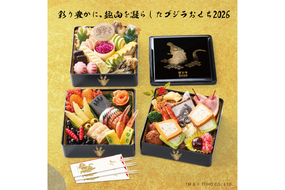 「ゴジラおせち」は毎年完売する人気商品で、2026年版のおせちは「シン・ゴジラ」や「モスラ」など、歴代の東宝特撮作品の中から周年を迎える作品にスポットライトを当てて開発された。