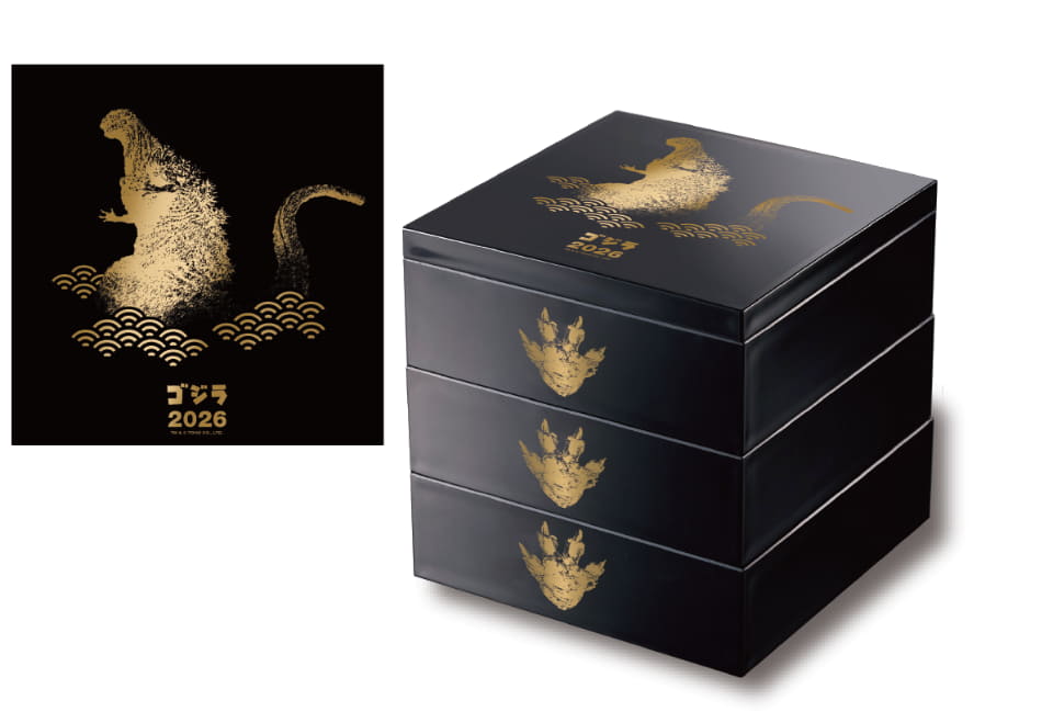 シン・ゴジラなどの三段重「ゴジラおせち2026」予約開始。ゴジラおみくじ/祝箸/ポスター付き