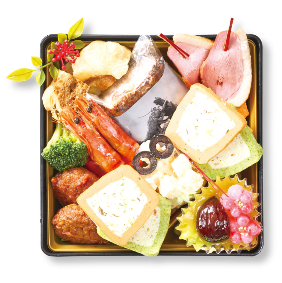 和洋中の豪華な三段重になっており、一の重にはゴジラ&怪獣、二の重には「シン・ゴジラ」、三の重には「ゴジラ・エビラ・モスラ南海の大決闘」をイメージした料理が詰められている。