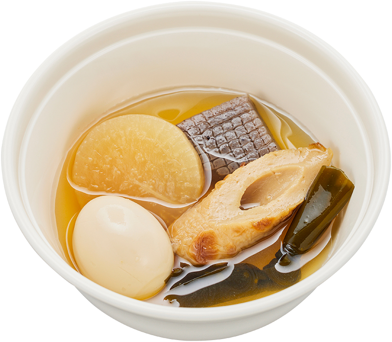 2025年2月から一部店舗で販売し、好評だったことを受け、今秋は全店で展開する。鰹節が香る本格和風出汁で深い味わいとなっている。単品で「大根」「玉子」「ちくわ」「こんにゃく」「店内仕込つみれ」をラインナップし、「おでん5種盛り合わせ」には大根・玉子・昆布・こんにゃく・ちくわが入っている。