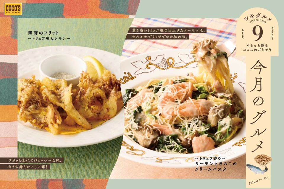 ココス、トリュフを使ったサーモンときのこのクリームパスタや舞茸のフリットが登場!「今月のグルメ~9月~」