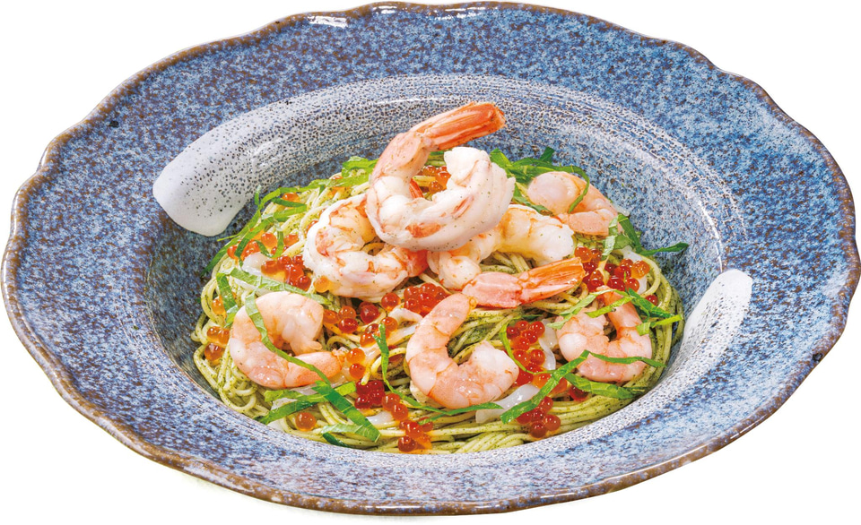 “冷製カッペリーニ”赤エビといくらの大葉ジェノベーゼ