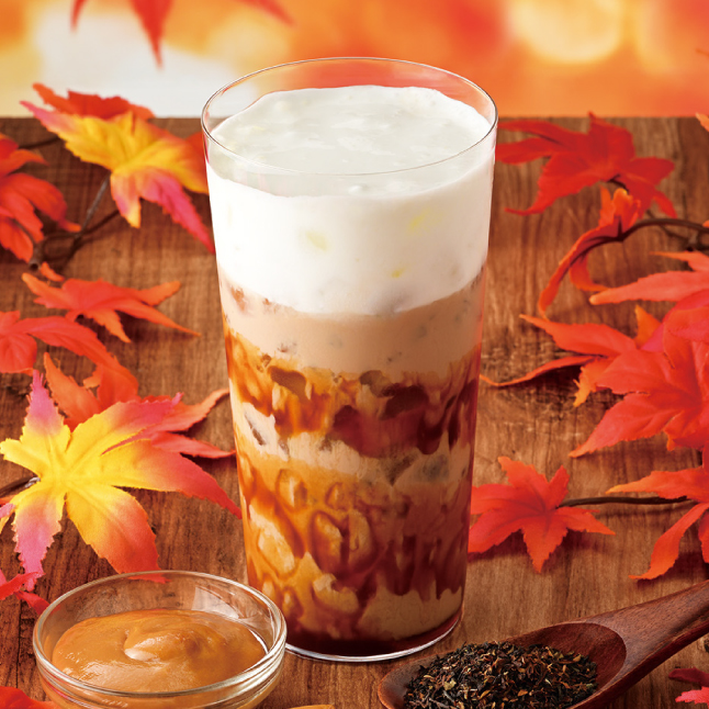 昨年好評だったため再販の商品。オリジナルロイヤルミルクティーに、プリンのカラメルを思わせる香ばしくほろ苦いキャラメルソースをあわせた。さらに、とろりとなめらかで厚みのあるミルクホイップをトッピ