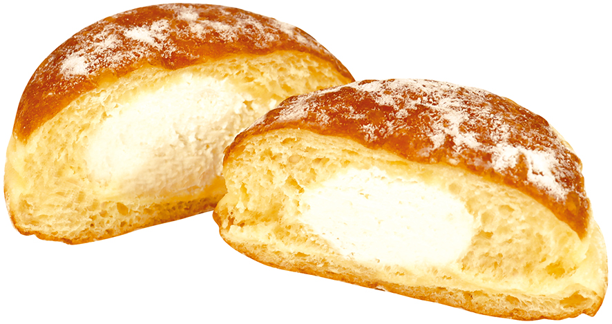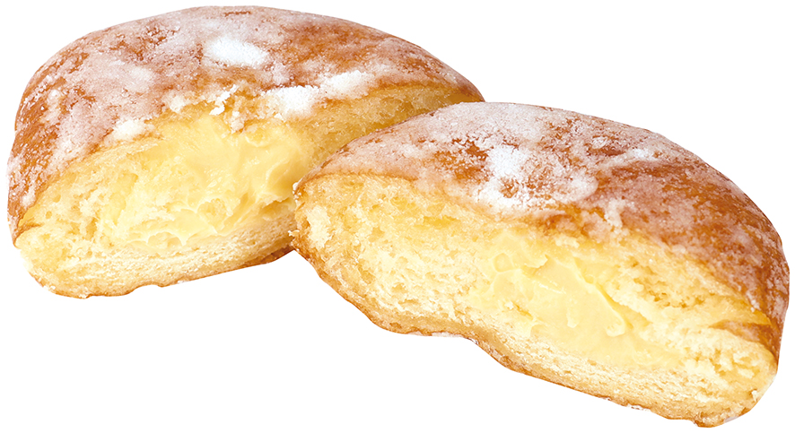 ふわもち食感のドーナツに、ブランド卵「きよらグルメ仕立て」を使用した濃厚なカスタードと北海道産練乳を混ぜたクリームを詰めた。