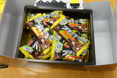 特製ボックスの中には謎のペーパークラフトが入っており、組み立てると断面モンスターの体が出現。どうやら、この上に割ったブラックサンダーを置け、ということのようだ。