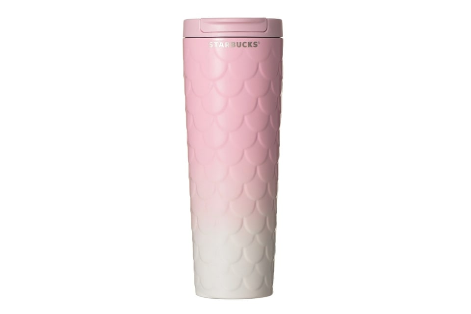 サイレンテイルを立体的に表現したスタイリッシュなステンレスタンブラー。白からピンクのグラデーションが印象的なデザインになっている。真空二重構造ステンレスで、保冷性に優れている。